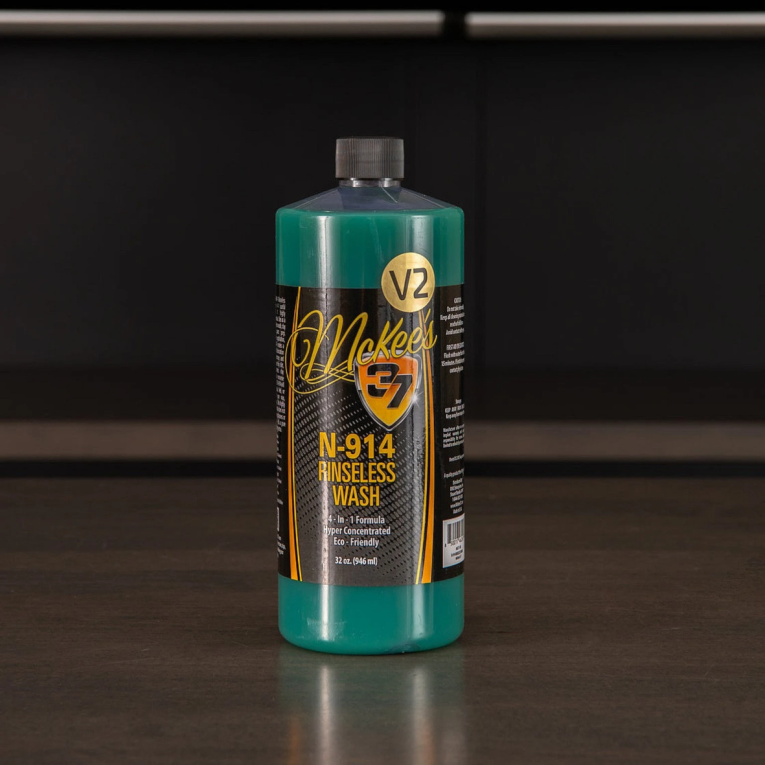 The idea behind using McKee's 37 N-914 is that it's formulated with a highly advanced surfactant that does one thing and one thing only: clean your car without leaving a film behind that alters the look or water beading and sheeting characteristics of your wax, sealant, or coating. At Obsessed Garage, we believe in having one product that does its one job and it's the best we've found at doing that one job. Why would I want my waterless/rinseless wash to have waxes or polymers in it when I'm going to go around the car afterward with what I consider the best drying aid/sealant to clean up any leftover water. This process allows you to use whatever last step protectant works best with your coating, sealant, or wax.
